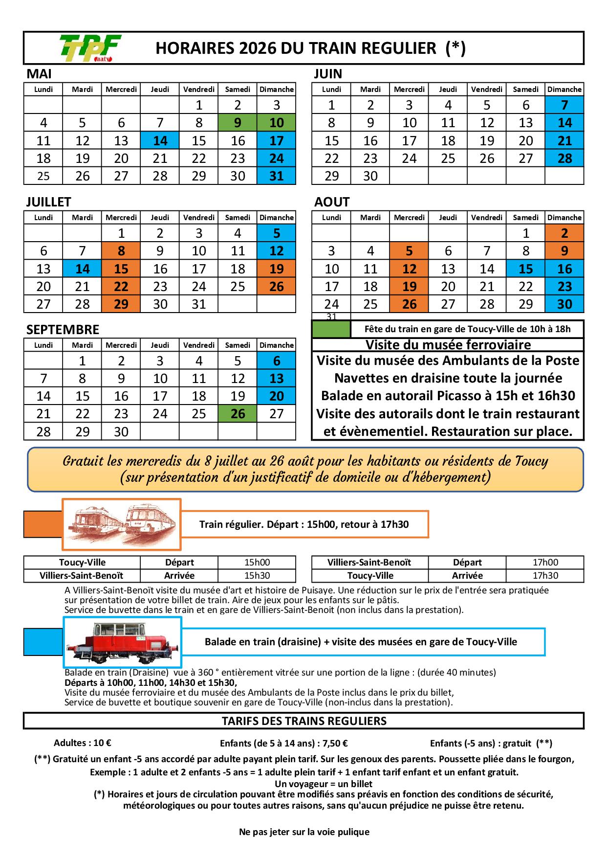 Cliquez sur la date souhaitée (où des trains circulent), une fenêtre apparaitra alors en bas du tableau. Cliquez sur détail pour réserver vos places.